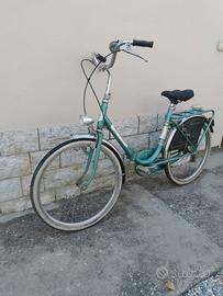 Bici da donna, modello Graziella pieghevole, ruote da 24. gomma davanti deteriorata