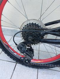 Cambio Shimano, forcella ammortizzante anteriore e molla centrale (entrambe in foto), freni funzionanti. Ideale per bambini 6-10 anni. Colore rosso sportivo, pronta all’uso!