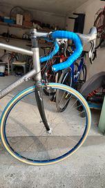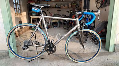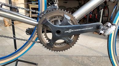 Bicicletta in condizioni perfette, anno 2006. Telaio in titanio. Gruppo Campagnolo Chorus 10v, usato pochissimo (l'intero gruppo - pedivelle, guarnitura, cambio ant., cambio post, freni) è stato sostituito), nastro manubrio nuovo. Cerchi Ambrosio Misura 57 (adatta per persone alte almeno 184cm) Passaggio ruota largo: è possibile montare coperture di larghezza 28mm.
