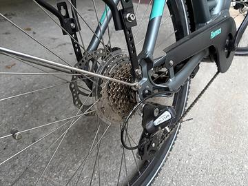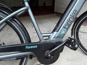 Bicicletta pedalata assistita BRINKE FLORENCE vendo CAUSA INUTILIZZO COME NUOVA. E' una delle bici da città elettrica con lo scavalco più basso presente sul mercato. Gode di un prezzo assolutamente competitivo, pur vantando finiture di qualità. Ideale per l’uso quotidiano in contesto urbano. CARATTERISTICHE PRINCIPALI: Motore: Motore centrale DAPU 36V – 250W – 80Nm Batteria: Integrata 374Wh Deragliatore Posteriore: Shimano Altus 8 velocità Forcella: Forcella ammortizzata Suntour Nex Telaio: TELAIO IN ALLUMINIO STEP TROUGH – Ruote 26” taglia XS, – passaggio cavi interno Display: Lcd Attacco Manubrio: Alluminio regolabile Manubrio: Alluminio larghezza 610mm Reggisella: Reggisella 27.2mm Sella: Comfort con elastomeri Freno Anteriore: Freno a disco meccanico Freno Posteriore:. Freno a disco meccanico Rotori: 180mm anteriore – 160mm posteriore Comando: Shimano Altus 8 velocità Cassetta: ShimanoCS-HG41 11-34T 8 velocità Catena: KMC X8 Guarnitura: Alluminio Pedivelle: 38T Mozzo Anteriore: Alluminio 100mm QR Mozzo Posteriore: Alluminio 135mm QR Cerchio Anteriore: Alluminio Cerchio Posteriore: Alluminio Pneumatico Anteriore: Kenda K935 26”x1.75” taglia XS – 700x40C taglia S Pneumatico Posteriore: Kenda K935 26”x1.75” taglia XS – 700x40C taglia S Portapacchi: Alluminio Parafanghi: 52mm Cavalletto Laterale: incluso