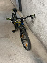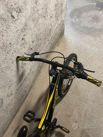 Vendo bellissima bicicletta Rock Machine modello Surge 20. È una bici robusta, ideale per bambini/ragazzi che vogliono una mountain bike affidabile e facile da guidare. Caratteristiche principali: • Ruote: Misura 20 pollici (perfetta per un'altezza tra i 115 e i 135 cm circa). • Cambio: Sistema a manopola (Grip Shift) molto semplice da usare per i bambini. • Freni: Freni a V (Tektro) potenti e sicuri, appena controllati. • Telaio: In alluminio leggero, con colori nero, giallo e azzurro molto sportivi. • Accessori: Catarifrangenti sulle ruote e pedali antiscivolo inclusi.