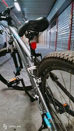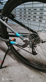 Vendo bicicletta Rockrider 27,5'' come nuova usata una sola stagione estiva. I pattini freni e le gomme sono ancora quelli forniti all'acquisto e non sono usurati. Nessun segno di ruggine. Nel prezzo e compreso anche luce e cavalletto comprato sempre da decathlon.