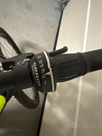 Vendo bicicletta rockrider MTB con qualche segno di usura, ma ben funzionante. Le pinze del freno anteriori sono originali mentre quelle posteriori sono state cambiate con delle pinze rosse molto più efficienti che permettono di aver maggior controllo anche in percorsi sterrati. È dotata di ammortizzatore anteriore e cambio a 6 marce posteriore e 3 marce anteriore.