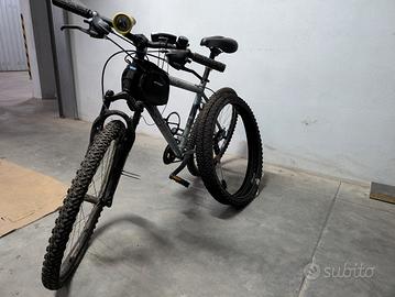 vendo per inutilizzo bicicletta rockrider (decathlon) da uomo con cerchi da 26". La bici è in time condizioni, accessoriata con cavalletto, luci anteriori e posteriori, porta borraccia, borsa da telaio con porta telefono. In aggiunta cedo anche copertoni di ricambio. prezzo leggermente trattabile