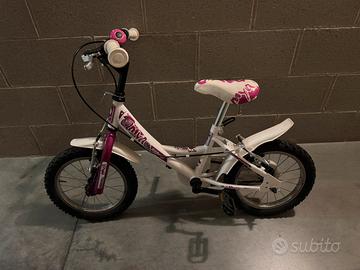 Vendo bellissima bicicletta per bambina modello Röllmar Mya (la misura dovrebbe essere 14 pollici, ideale per 3- 6 anni). La bici è in ottime condizioni, robusta e pronta all'uso, fornita con rotelle. Incluso nel prezzo regalo Triciclo Chicco Pellicano con pratico maniglione telescopico per la spinta dei genitori, cestello portaoggetti e cinture di sicurezza.
