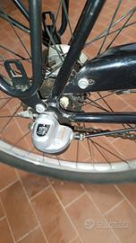 Vendo splendida bicicletta misura L da uomo , marca Rossignoli modello Garibaldi 71 di colore nero completa di campanello, portapacchi con luce a batteria, cerchi Beretta e copertoni larghi Scwalbe Fat Frank, cambio Shimano Nexus 3 V incorporato nel mozzo e freni anteriori e posteriori a tamburo entrambi incorporati nei mozzi. Il seggiolino per bambino è escluso dalla vendita. No perditempo.