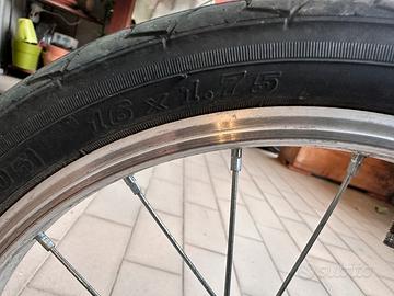 Come da titolo. Ruote da 16 pollici Tenuta benissimmo, sempre depositata in box interno, freni, cavalletto, ruote ottimi.