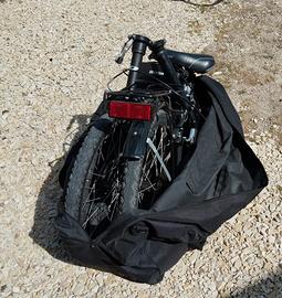 Bicicletta pieghevole con sistema di chiusura centrale, appena revisionata. Comandi cambio grip destro 6 velocità Ruote 20x1,75 Peso 14 kg Telaio in acciaio e cerchi in alluminio. La bicicletta viene venduta con una sacca che la contiene perfettamente. Disponibilità a consegnare direttamente anche in zona Bassano del Grappa o dintorni.