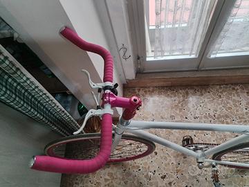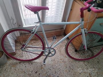 bici con cambio a velocità fissa telaio in acciaio e cerchi in lega manubrio antiscivolo e sella ergonomica colore bianco peso 10 kg prezzo trattabile