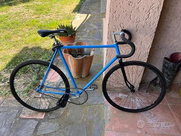 Vendo bicicletta scatto fisso taglia M (adatta per altezza tra 1,70 e 1,85 m), perfetta per la città. Telaio in acciaio leggero, pedali antiscivolo, sella comoda, manubrio bull e ruote nuove.