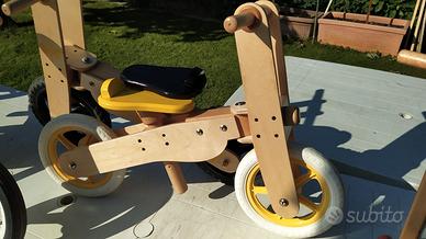 biciclette in legno senza pedali con sedile regolabile per bambini da due anni in poi. misure cm. 80x60x30
