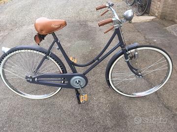 Bicicletta da donna con freni a bacchetta interno canna, marca Legnano sabbiata e riverniciata a polvere a 200 gradi mancante solo di calcomanie. Cerchioni in acciaio nuovi completi di copertoni e camere d'aria anch'essi nuovi dinamo bosch, faro a cipolla con vetro a lente, campanello San Cristoforo, sella nuova, retina salva gonna da aggiungere a seconda del colore desiderato anno 1935.