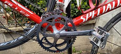 Bicicletta Specialized Allez, taglia S unisex. Pedali senza attacchi. Forcella davanti in carbonio. Entrambe le forcelle hanno inserti in silicone speciale per assorbire gli urti. Cambio Campagnolo Veloce. Freni a pattino.