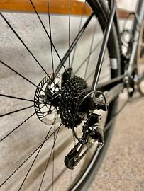 La Diverge Comp E5 monta il gruppo Shimano 105 a 11 velocità, freni a disco, robuste ruote Axis Sport Disc (ho rimontato quelle originali, non quelle della foto). Misura 54