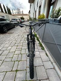 monta forcella rockshox pike 160 mono 150, cambio sram 11 velocità, freni sram, reggisella telescopico . taglia 27.5 ruota anteriore tubless + salsicciotto - ruota posteriore camera d'aria , copertone maxis posteriorer- copertone pirelli scorpion