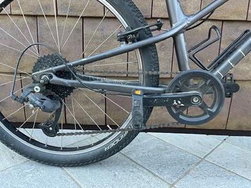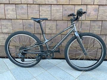 Vendo, per passaggio a taglia più grande, bicicletta Jett 24 grigio antracite in ottimo stato. Includo caschetto Specialized giallo fluo.