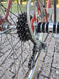 Vendo bicicletta vintage sportiva in ottime condizioni. Telaio rosso leggero e robusto, ruote da 28” con gomme sottili e riflettori, cambio Shimano preciso e fluido. Dotata di borsa portaoggetti, parafanghi, cavalletto e luci anteriori. Perfetta per la città e le uscite su strada, con uno stile classico e grintoso. Pronta all’uso!
