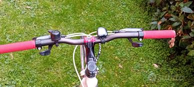 Vendo bicicletta sportiva e comoda anche da passeggio con forcella in carbonio, alta 73 cm più sella, incluso contachilometri e portaborraccia con borraccia. Includo anche caschetto con occhiali e abbigliamento sportivo femminile taglia S/M.