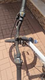 vendo per inutilizzo. La bici- con marcie- ha il sellino nuovo e coprisellino ed il manubrio é leggermente rialzato attraverso un raccordo specifico.