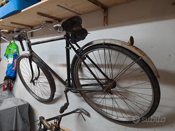 Bici vintage "Standard" oscurata (per la legge dell'oscurazione nella seconda guerra mondiale) del 1934, completa e coeva, faro a candela con vetro piombato dell'epoca, sella San Marco e rara gemma bugnata al posteriore.