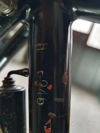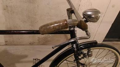 Vendo bici Taurus Lautal del '49? d'epoca, conservata, freni a bacchetta interni, movimento a campana, manopole in corno, dinamo, bloccaruota pompa originali, pedali in alluminio, sella Brooks anni 50, ruote 26'' e copertoni nuovi. Effettuato restauro conservativo e telaio protetto con vernice trasparente. Eccezionalmente scorrevole e silenziosa, se può interessare ho cercato sul Registro Storico cicli Taurus un numero di telaio vicino a quello della mia (H 6246) c'è una Taurus H 6461 del 1924!! Ulteriori foto a richiesta tel.3357615517