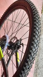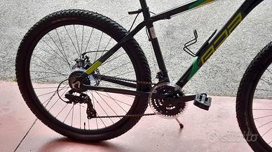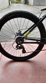bicicletta nuova , mai utilizzata poichè doppio regalo . Cerchi 27,5 , 9 rapporti cambio shimano , cavalletto . Notare nella fotografia i copertoni nuovi ancora con fili sporgenti
