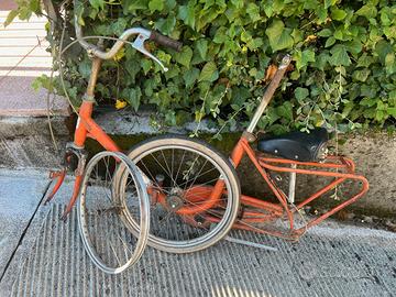 Modello pieghevole, ideale per trasporto in auto, colore Arancione, smontata mancano i i pedali e i parafanghi, i cerchi sono presenti di cui uno con il suo copertoncino, base ideale per personalizzazione.