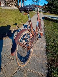 Le foto sono parte della descrizione, bici vintage usata e restaurata anni fa e ferma da altrettanti. Gomme grandi e originali, sellino da sostituire necessita di una messa a punto generale ma è in buone condizioni. ATTENZIONE: è stata verniciata in corten ( tipo ruggine) per sembrare una rat bike.