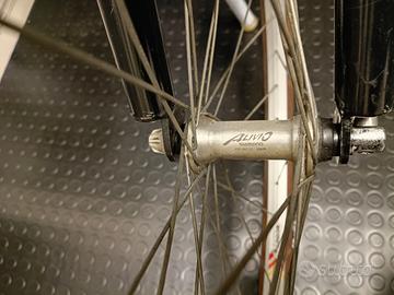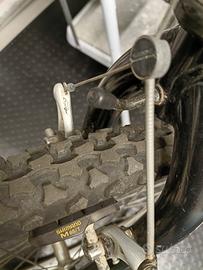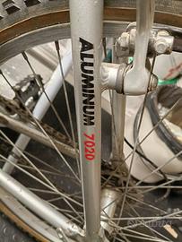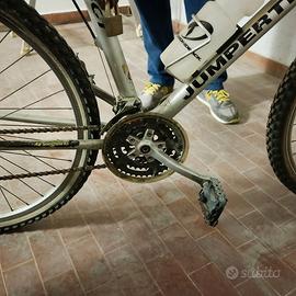 Vendo mountain bike Jupertrek inizio anni 2000. Telaio perfettamente dritto in alluminio. Tutta equipaggiata Shimano Alivio: cambio sette rapporti, freni, mozzi ruota. Sella ottima, cerchi, copertoni e tamponi freni cambiati poco prima di fermarla. La bicicletta non è utilizzata da più di 10 anni. La bicicletta è sempre stata tenuta in garage chiuso e non appoggiata a terra.
