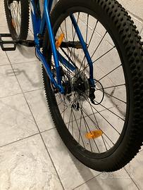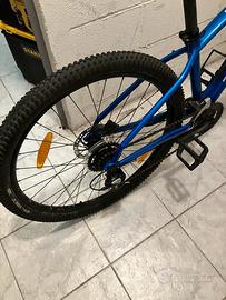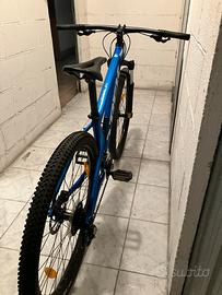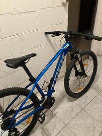 Telaio Alluminio Alpha Silver, passaggio cavi interno, supporto freno a disco fodero orizzontale, attacchi per portapacchi e cavalletto, 135x5mm QR Forcella SR Suntour XCT 30, molla elicoidale, precarico, blocco idraulico, offset 46mm per ruota da 29", 100mm QR, escursione 100mm Ruote Mozzo anteriore Formula DC-20, lega, 6 bulloni, 100x5mm Bloccaggio anteriore QR 116x5mm Mozzo posteriore Formula DC-22, lega, 6 bulloni, ruota libera Shimano 8/9/10, 135x5mm Bloccaggio posteriore QR 152x5mm Cerchio Bontrager Connection, doppia camera, 32 fori, larghezza 20mm, valvola Schrader Raggi Acciaio inox 14g, black Freno Disco idraulico Tektro HD-M275, rotore 180mm Set freni Disco idraulico Tektro HD-M275, rotore 160mm Peso M - 14.50 kg / 31.97 lbs (Con camere d’aria) Limite di peso Questa bici presenta un limite massimo complessivo (peso combinato di bicicletta, ciclista e carico) di 136kg (300 libbre).