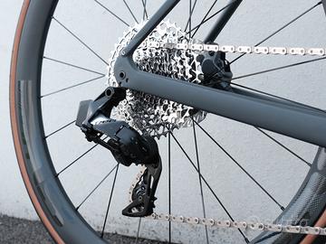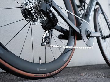 Bicicletta Trek Domane SL7 2021 - Nero/Antracite Specifiche Tecniche Telaio: Trek Domane SL7 Tg 52, carbonio OCLV 500 Taglia 52 Trasmissione Sram Force AXS 12v Comandi: Sram Force AXS 12v freno idraulico Cambio: Sram Red XPLR AXS 12v Guarnitura: Sram Force 1x12 XPLR 172,5 mm monocorona 48T Catena: Sram Force 12v Pacco pignoni: Sram XPLR PG-1231 12v 11/44T Freni a Disco Idraulici Sram 160/140mm Pinze: Sram Force AXS Ruote: Dedaelementi Carbon SL45 Ceramic Pneumatici: Pirelli P ZERO Race TLR, 700x28 Classic camera d’aria Manubrio integrato: Nex Gen Aero Cockpit 400x100 Sella: Pro Stealth NB Possibilità di vendita con Ruote gravel DT Swiss HE 1800 con cassetta Sram XPLR PG-1231 12v 11/44T, dischi e Pneumatici Pirelli Cinturato Adventure Classic 700x40 (pronto utilizzo)