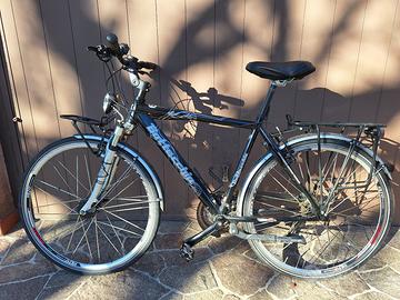 Vendo causa inutilizzo bicicletta da trekking Bottecchia. Tg. 52. Deragliatore ant. Alivio 3 rapporti, post. Deore 9 rapporti. Comandi manubrio Deore. Forcella ammortizzata. Telaio in alluminio, manubrio in carbonio. Doppio portapacchi, un set di borse incluso (non visibili in foto). Dinamo shimano nexus integrata nel mozzo. Prezzo leggermente trattabile.