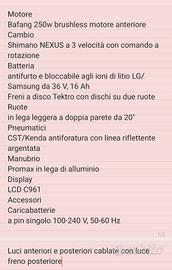 Allego foto anche di tutte le specifiche tecniche. Unico difetto sugli specchietti, che avevamo aggiunto noi, la bici non li aveva.