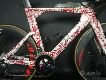 Montaggio Shimano ultegra 11v di2 elettronico con corone ovali. Coppia ruote da 80mm versione copertoncino, posteriore Carbon Core con mozzo Carbon Ti, anteriore Aeron. Copertoncini Veloflex. Sella specifica selle Italua TT. Non si vendono pezzi separatamente, non permuto / scambio..