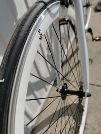 Bicicletta da corsa Pinarello nuova mai usata. Freni Tektro, sella Montegrappa originale in pelle, ruote Fixed, pedali e corona Prowheel. No marcie. Gomme da sistemare.