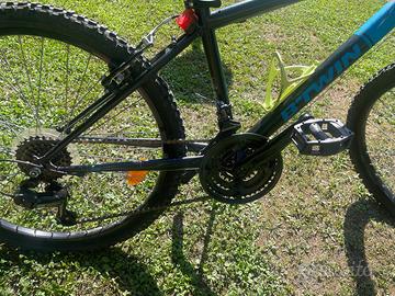 Bicicletta unisex da bambini Btwin nera e blu. Presenta segni di usura ma è comuqnue in buone condizioni.