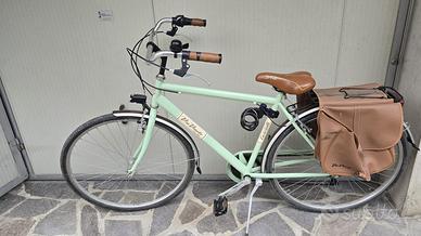 Bicicletta canna da uomo color verde acqua, ruote da 28", cambio shimano da 7 rapporti, porta pacchi e borse in pelle color cammello. Usata pochissimo, praticamente sempre tenuta in garage. Prezzo non trattabile