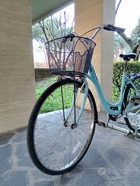 Regalo catena con lucchetto. Regalo borsa laterale sinistra da portapacchi. Regalo ulteriore coppia Copertoni nuovi imvallati. Copertoni e camere d'aria seminuovi. Monovelocità. Sella da uomo ergonomica antiprostatite. Con cestino anteriore e portapacchi anche dietro. Freni v- brake.