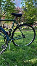 Vendo bicicletta uomo color verde bottiglia, a scatto fisso e con manubrio Torino. Incluso nel prezzo: catena sostitutiva, camera d’aria sostitutiva, catena blocca bici e lucchetto antifurto.