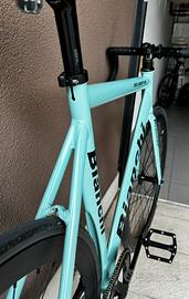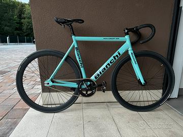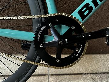 Vendo bici a scatto fisso – taglia 54 Replica modello Bianchi (non originale), in ottime condizioni. Guarnitura MICHE PRIMATO ADVANCED 50 denti Attacco manubrio DEDA ZERO 2 Reggisella DEDA ZERO 2 Copertoni michelin lithion 2 Freno anteriore incluso.
