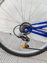 Vendo Bicicletta Uomo Hoocker cambi Shimano e ruote da 26 pollici come nuova,con 21 velocità e ruote da 26 pollici. Perfetta per ogni tipo di terreno , sia per le piste ciclabili,sia per terreni strerrati di ciclovie fluviali o boschive.Ottima per l estate in arrivo. Telaio Blu e e bianco con inserzioni gialle,pedali nuovi con catarifrangente,freni Easy rider anteriori e posteriori nuovi. Cambio Shimano. Traslatore e Corona Logan ,telaio in Acciaio leggero ma rinforzato, manubrio Promax bike in lega rinforzata,leve a cambi girevoli Logan. Comoda sella Tourne Daily,copertoni e manopole nuove antiscivolo e anti acquaplaning. Consegna a 10 euro su Padova e Provincia