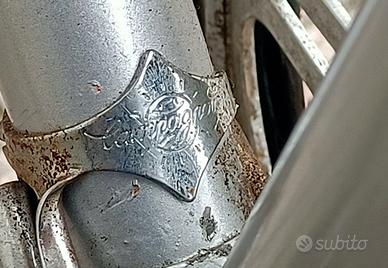 marca FRUGERI di Novara, ruote misura 28 , completa di blocca ruota d'epoca con doppia chiave, carter , 3 rapporti "Campagnolo", luci con dinamo , freni,pedali e sella perfetti.