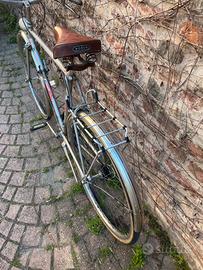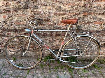 Vendo bicicletta uomo ottime condizioni, revisionata e pronta all’uso. Telaio misura 56 orizzontale x 54 verticale cm. Ruote da 28. Dotata di cambio e cavalletto, fanale anteriore a dinamo funzionante. Pattini freno e cavo cambio nuovi. Prezzo 110 euro, ritiro a mano zona Corso Sommelier