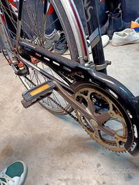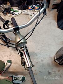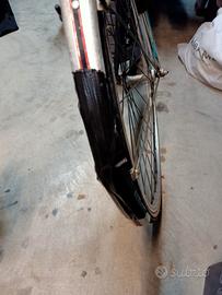 ex bici da corsa anni 80.. leggerissima! ruote semi tubolari da 26...Completa di tutto! dal campanello al lucchetto.. Scorrevolissima! in ottime condizioni, revisionata e gomme nuove...unico " difetto" il parafango della ruota anteriore rotto ( valore 15€)