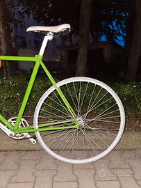 Vendo bicicletta dal design minimalista, telaio color verde fluo con dettagli bianchi. Ideale per spostamenti urbani, veloce e leggera. Perfetta per chi cerca uno stile unico e vuole muoversi agilmente in città.