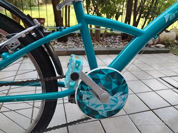 Bici con ruote da 20 pollici. della decathlon. Ottime condizioni: qualche graffio dovuti al normale utilizzo. Sellino originale integro, dotata di parafanghi. Tenuta sempre in garage quando non utilizzata. Possibilità di acquistarne un'altra per bambina di colore diverso. Consegna solo a mano a Garda e dintorni. Disponibile per qualsiasi informazione.