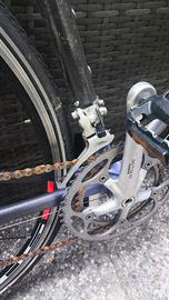 Vendo bici da corsa GIANT Cadex vintage, leggera e reattiva, ideale per uso urbano o progetto restauro. Telaio in alluminio composito, ruote 700c con copertoni 700x25. Monta freni Shimano 105 e guarnitura Shimano Ultegra. Manubrio con nastro da rifare e sella sportiva confort. Bici funzionante ma con segni di utilizzo: trasmissione con ossidazione, consigliata manutenzione (catena e regolazioni). Ottima base per appassionati di bici d’epoca. Contattami per maggiori informazioni o foto aggiuntive.