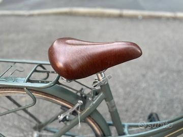 🇮🇹 Vendo bicicletta Alpina city bike vintage in verde oliva, telaio basso step-through, perfetta per muoversi in città con stile e comfort. Il cambio Shimano a 7 velocità è fluido e preciso, ideale per Milano – anche su tratti in leggera salita.