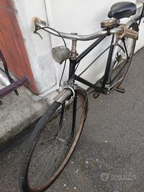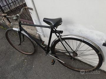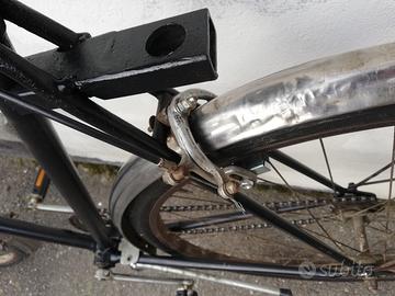 Causa abbandono progetto restauro per mancanza di tempo vendo questa bici da uomo datata (stampo su movimento centrale) 1958. Il restauro non è stato terminato per sopravvenire di cose più importanti pertanto la vendo come pezzi di ricambio o da restaurare con formula visto e piaciuto. Primer trasparente e prima mano di nero, pedali e pattini freno nuovi. Aggiunto nel sottosella,come visibile in foto, femmina per trasportino o rimorchio. Valuto offerte sensate o eventuali permute, non è in regalo.