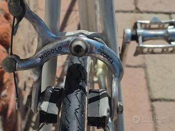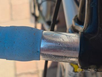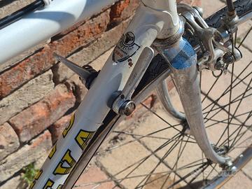 Vendo bicicletta vintage ,bianco perlato, serie leggera con tubi al carbonio manganese molto leggera,doppio cambio ,doppia leva , pignone a 6 ,cerchioni in alluminio, freni da corsa nuovi, sella S.Marco ,fornisco anche sella Fi.Zi K bianca con canotto .Tenuta molto bene